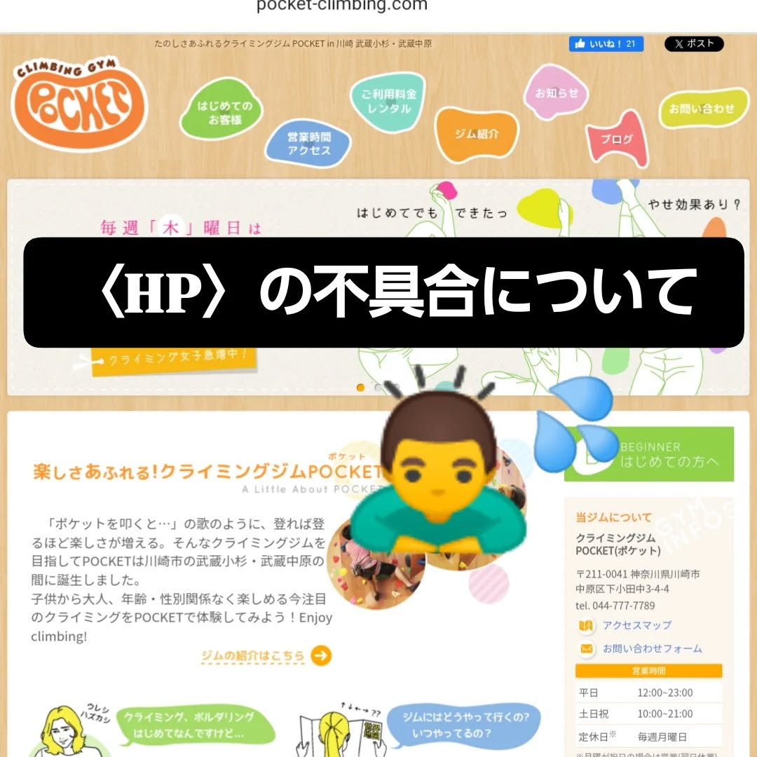 等ジムのホームページの不具合についてのお知らせです。