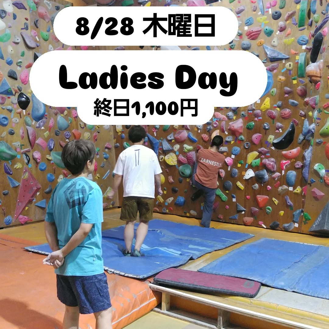 本日はレディースデイ 女性のお客様は終日1,100円 『木曜日』は女性のお客様は終日お得に登れます 8月最後の Ladies Day 、昨日はカッコいい素晴らしいトライがたくさんッ もう少しで…
